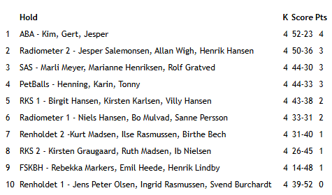 Topplaceringerne gik til: