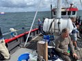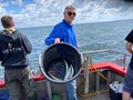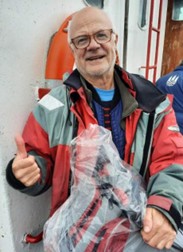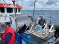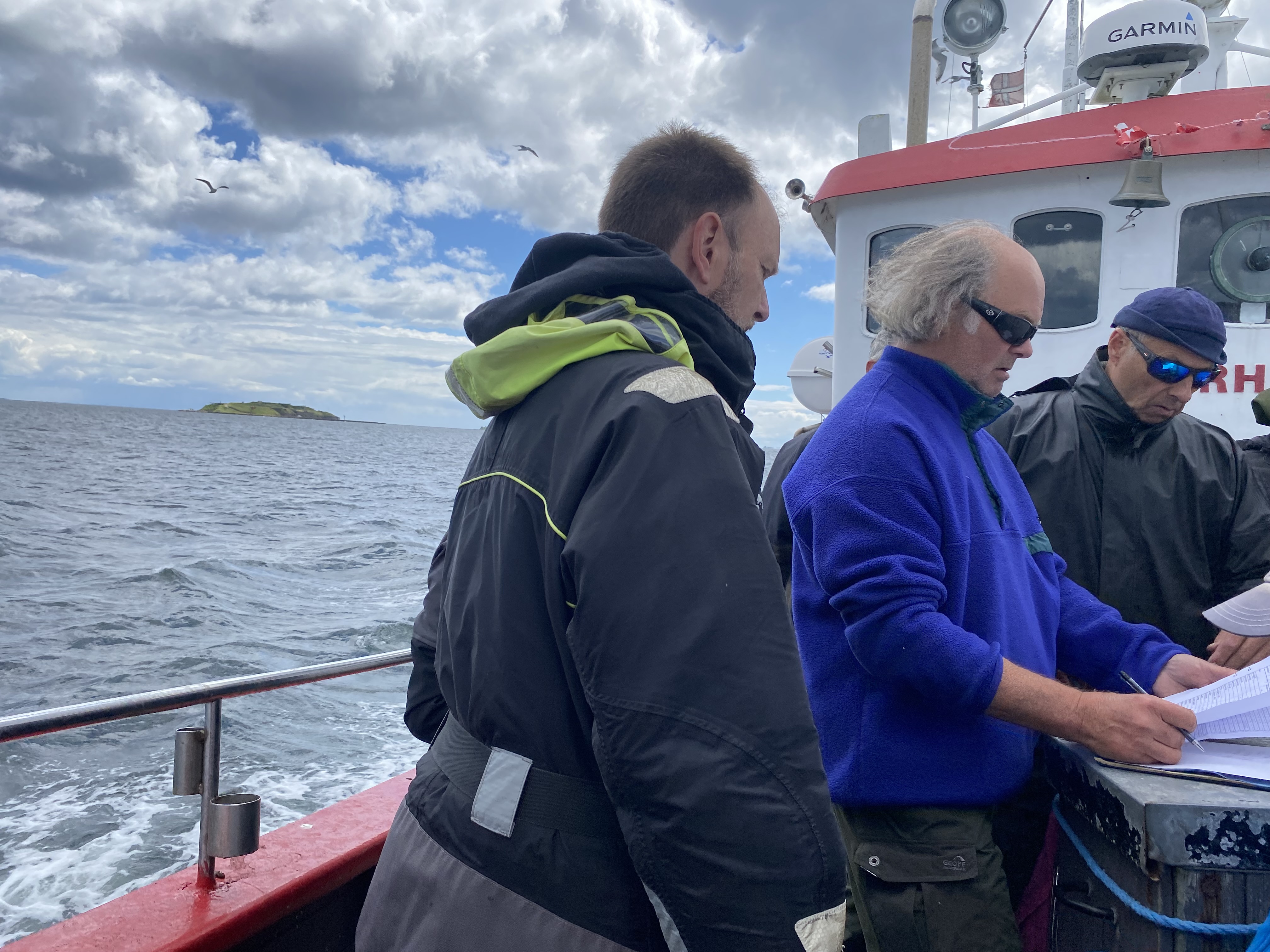 Stemningen var høj, da Arresø lagde til kaj med sække fulde af makrel fra morgenholdet. Vi satte kurs mod Ven, men måtte nøjes med selskab af nysgerrige sæler.