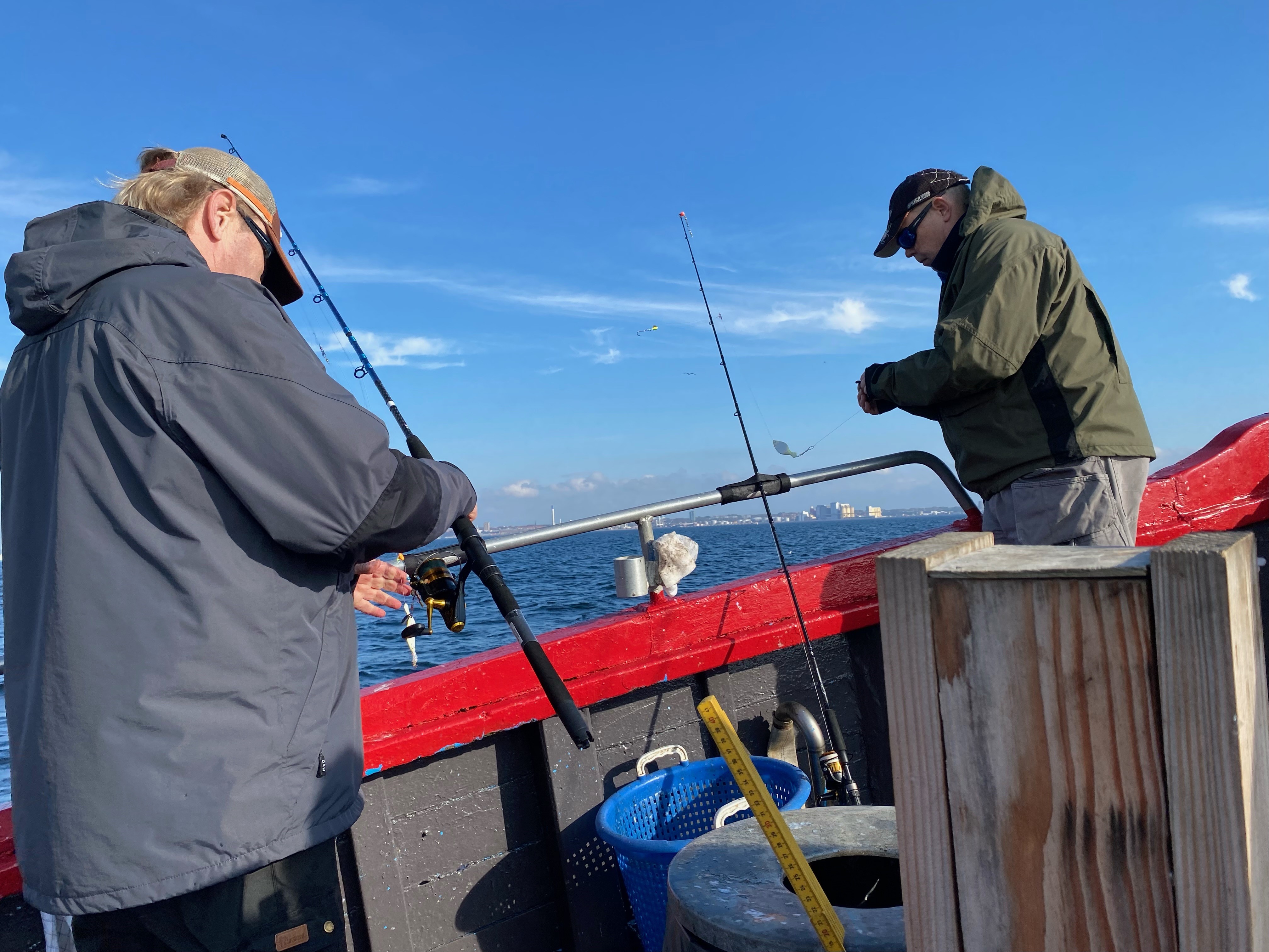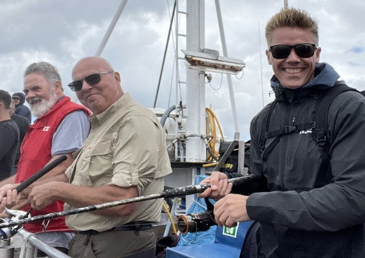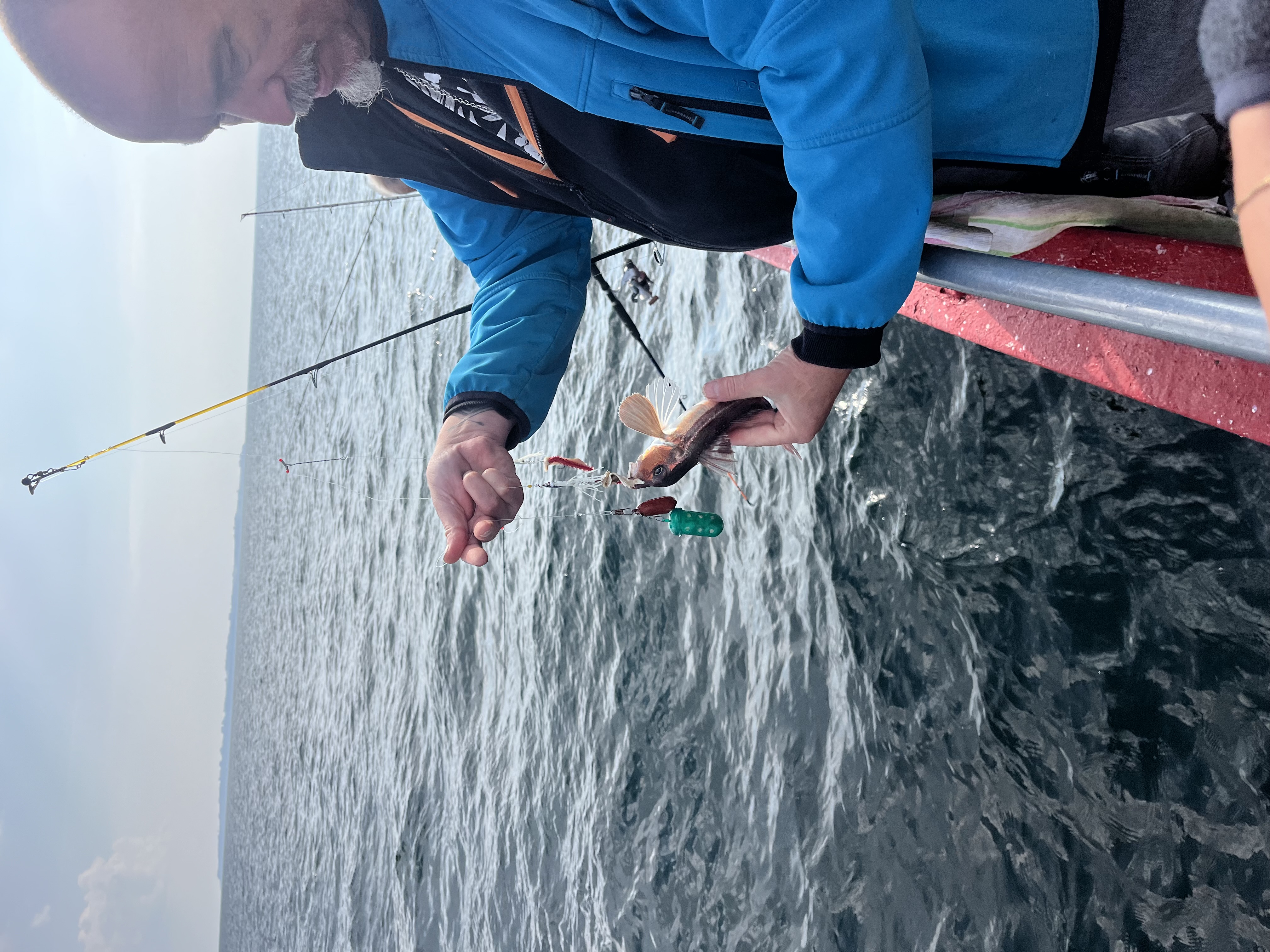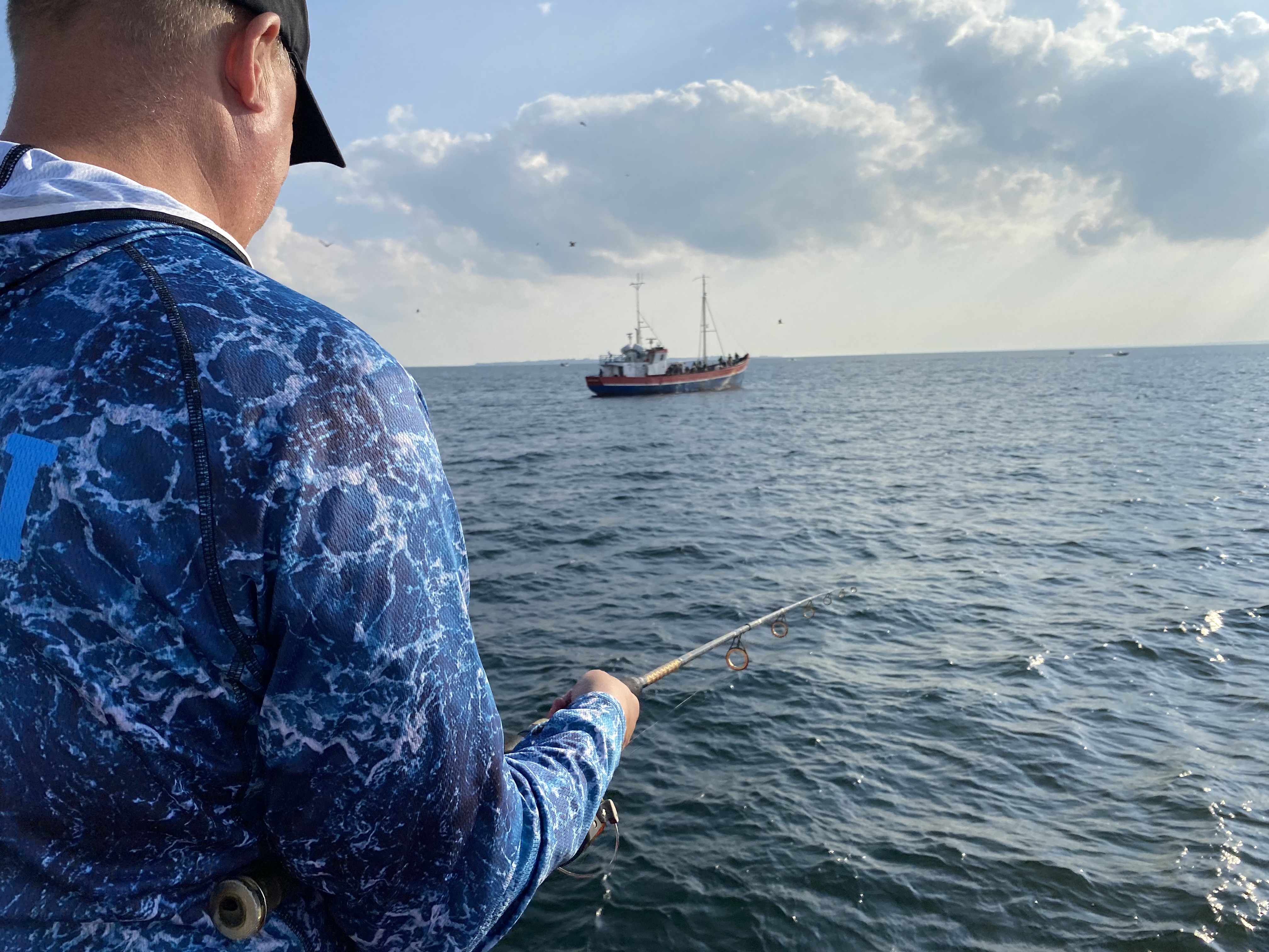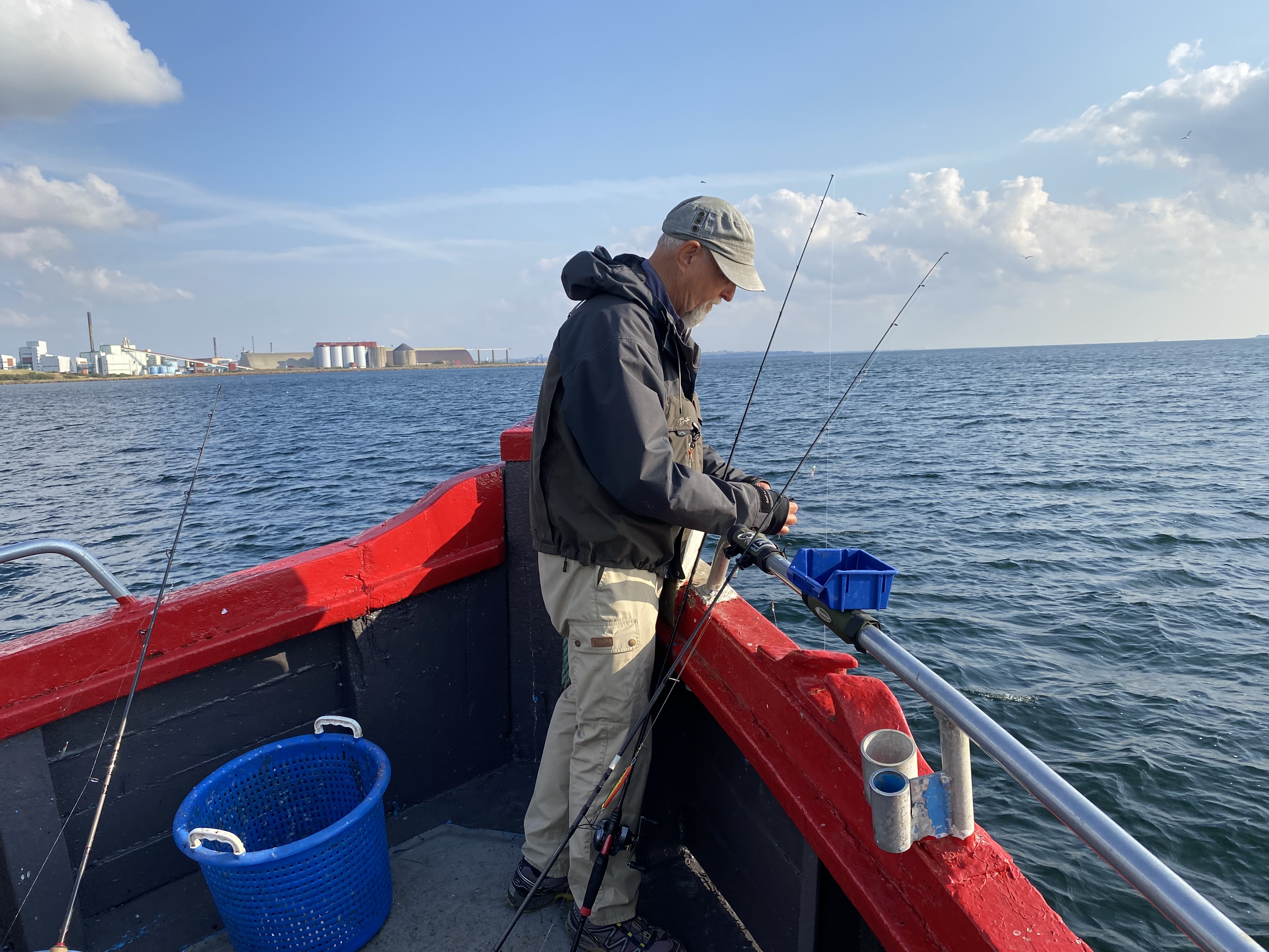 Fremme på fiskepladserne holdt skipper båden så alle kunne få snøren på bunden. Selvom Øresund lå badet i sol og næsten ingen vind rørte sig, var der en rivende strøm, og den blev der kompenseret for med motorkraft af skipperså alle fik et relativt problemfrit fiskeri.