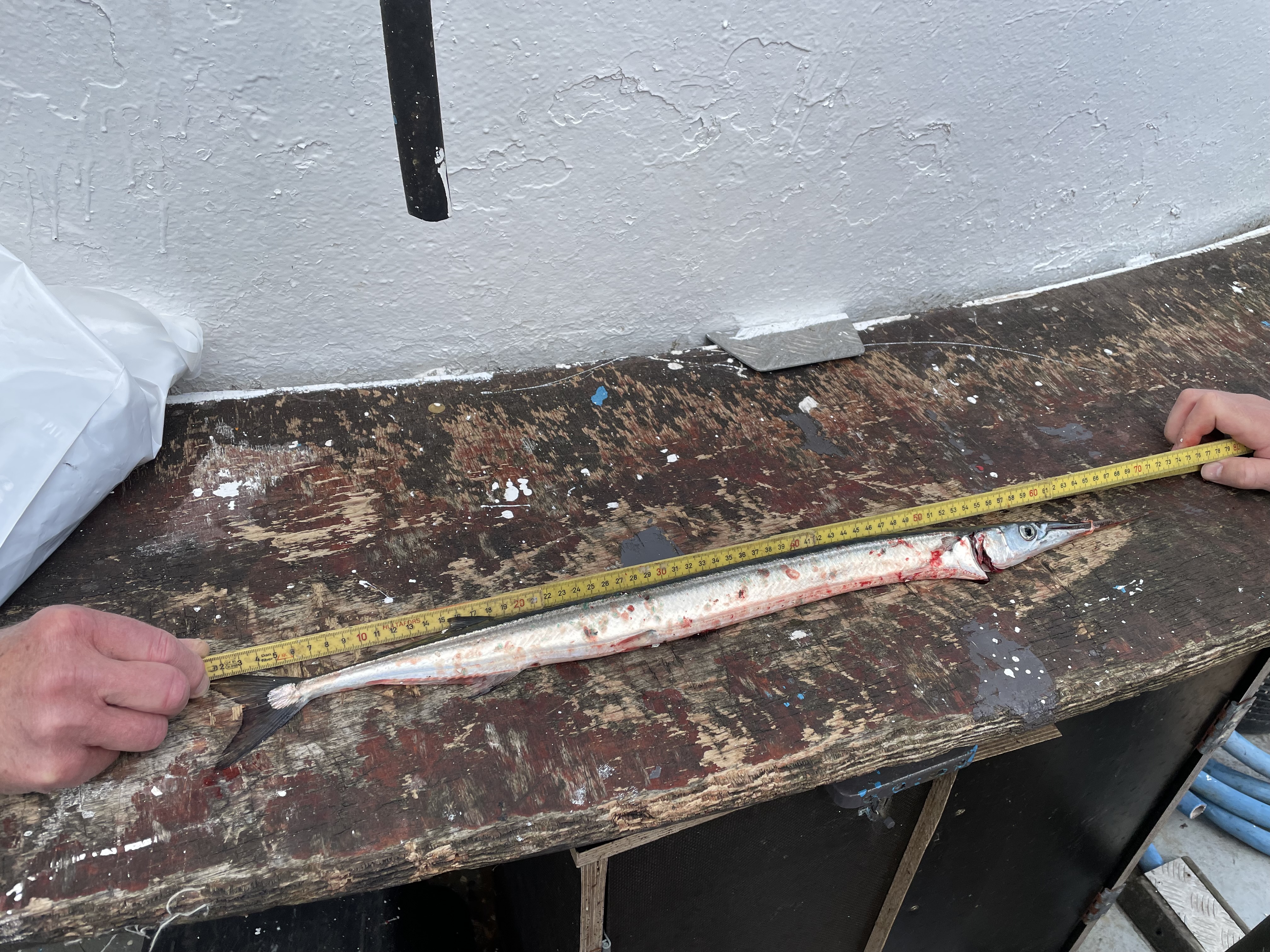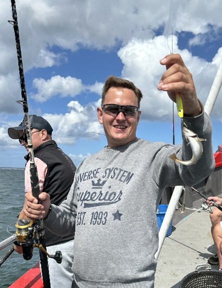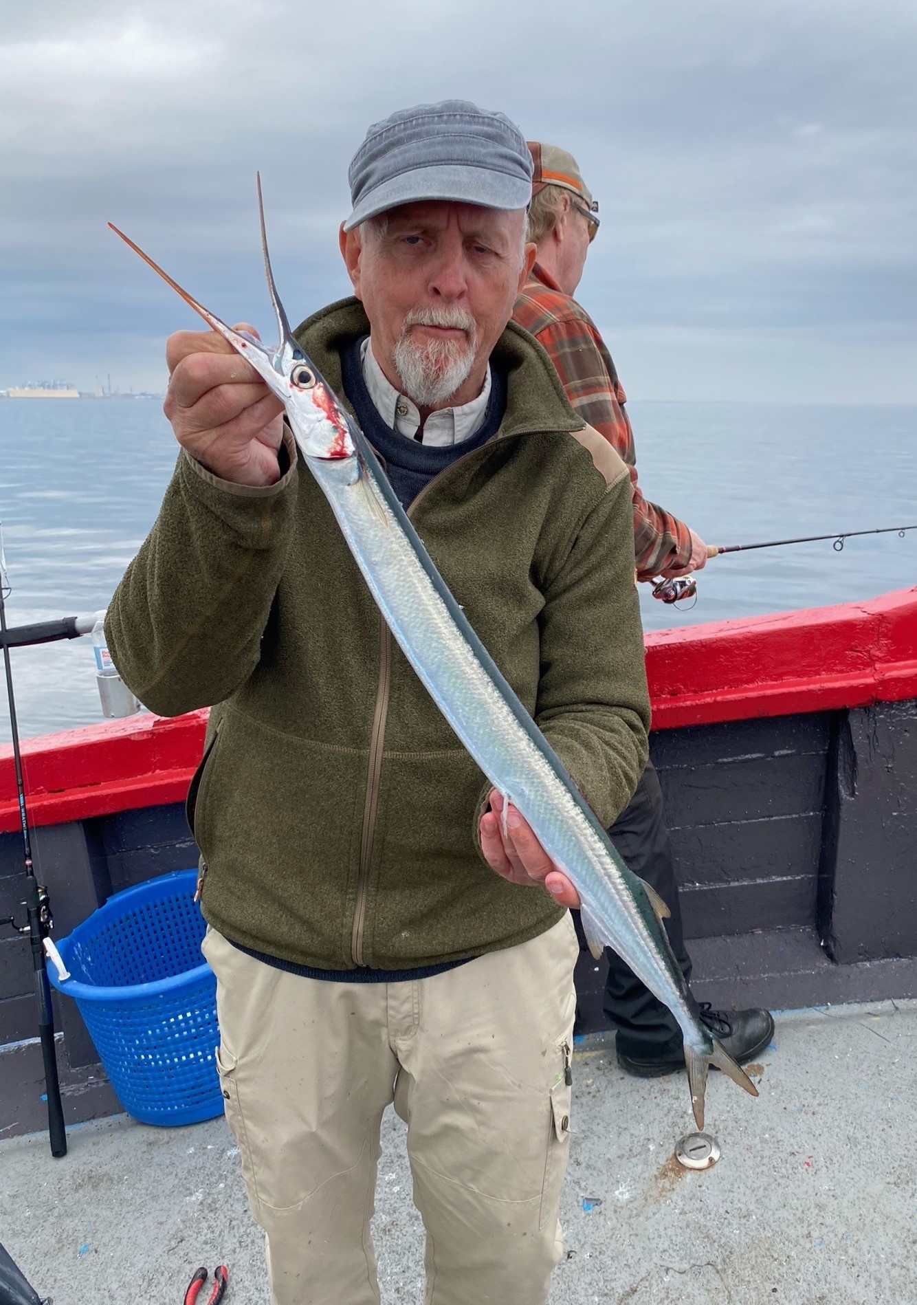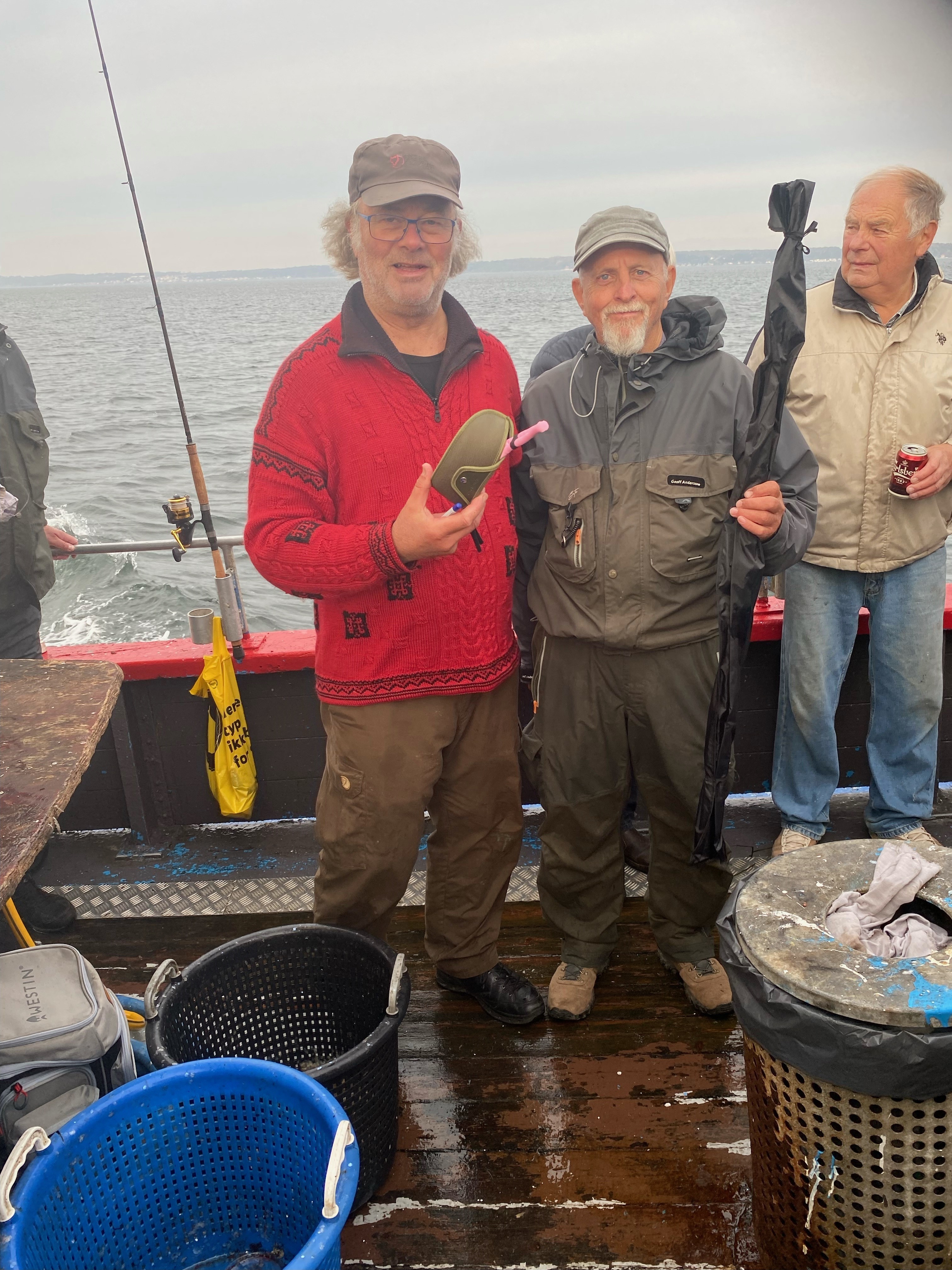 Der blev fisket ihærdigt, enkelte deltagere afstod fra at fange hornfisken og søgte lykken på bunden med agn. Det gav nogle flade og hvillinger, men ingen hornfisk. Skipper gjorde hvad han kunne, vi fiskede både her og der, ved Sverrig og alle vegne omkring Helsingør, men lige meget hjalp det. Der var sporadisk kontakt, men først i den sidste time kunne Magnus fra Nordea svinge 705 mm hornfisk over rælingen, og vi kunne kårde en vinder af ad FSKBH hornfisketur 2025. Om det var skipper eller fiskerne der løb af med den samlede sejr blev diskuteret på vejen hjem i VAR-vognen, men svaret udeblev.