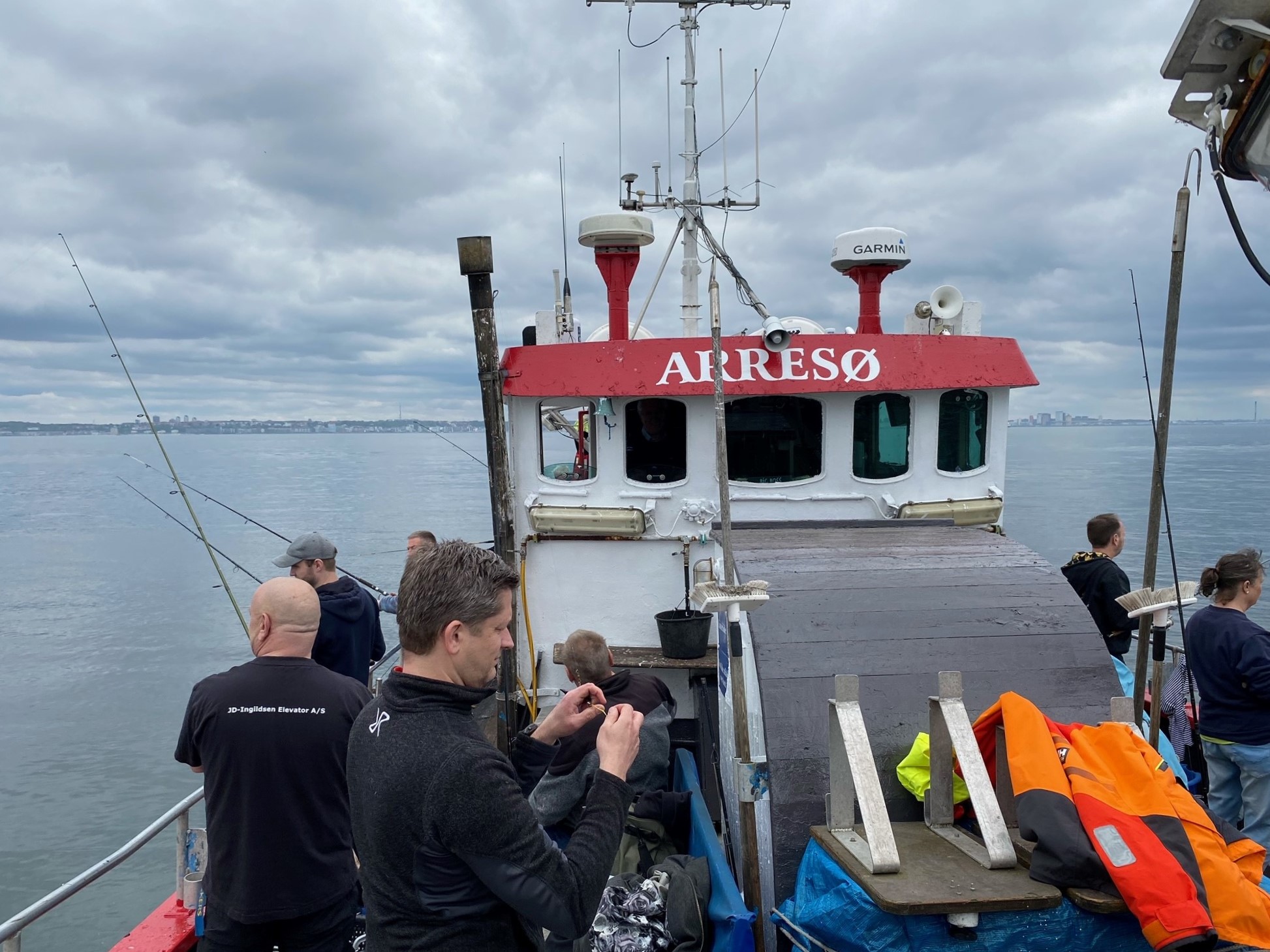 Til de tidligst fremmødte- og forhåbningsfulde fiskere proklamerede skipper at: "Alt er forkert. Det blæser fra nord og strømmen er sydgående, og hornfisken går mod strømmen. I fanger ingen fisk.". Skippers spådom blev proklameret for de sidst ankomne på det gode skib Arresø. Det var i god tid til at gå fra borde og tage tidligt hjem og nyde kage og kaffe på sofaen.