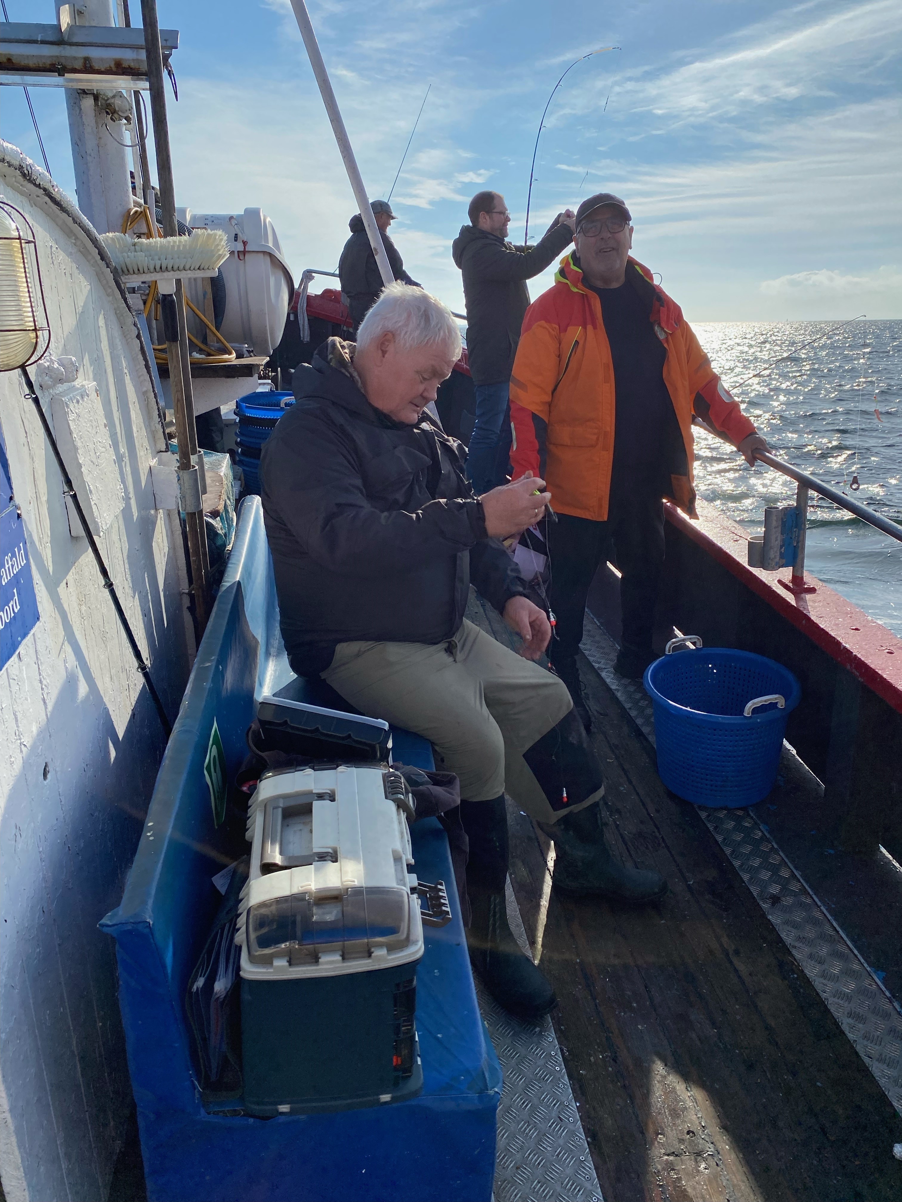 Der blev fisket intenst, og Rødspætter, Skrupper og Isinger sprællede lystigt i kurvene frem til middag, hvor vi sejlede hjem.