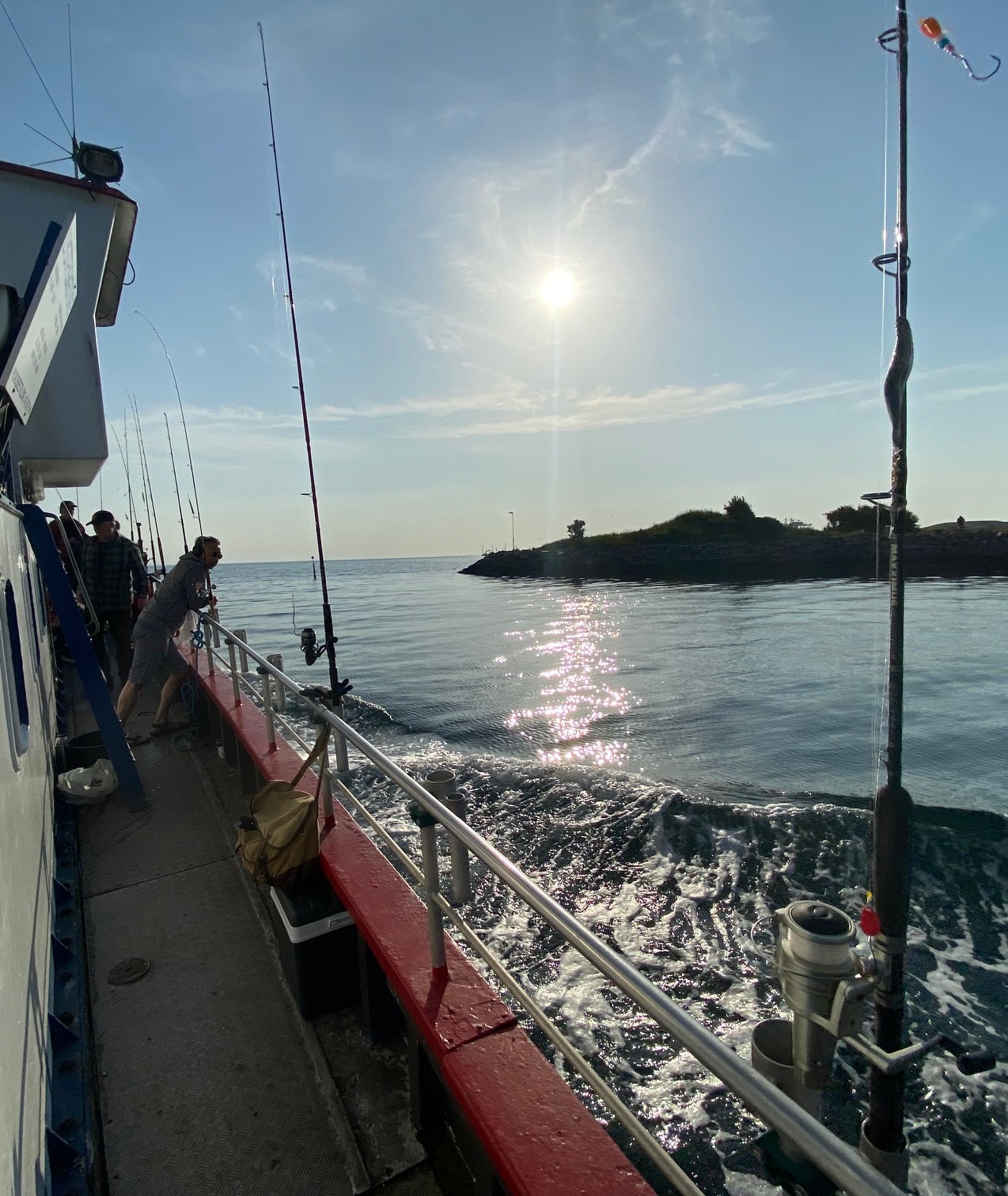 Med morgensolen fra sin ypperste placering og med fuld blus, stævnede vi ud fra Kalkbrænderihavnen.